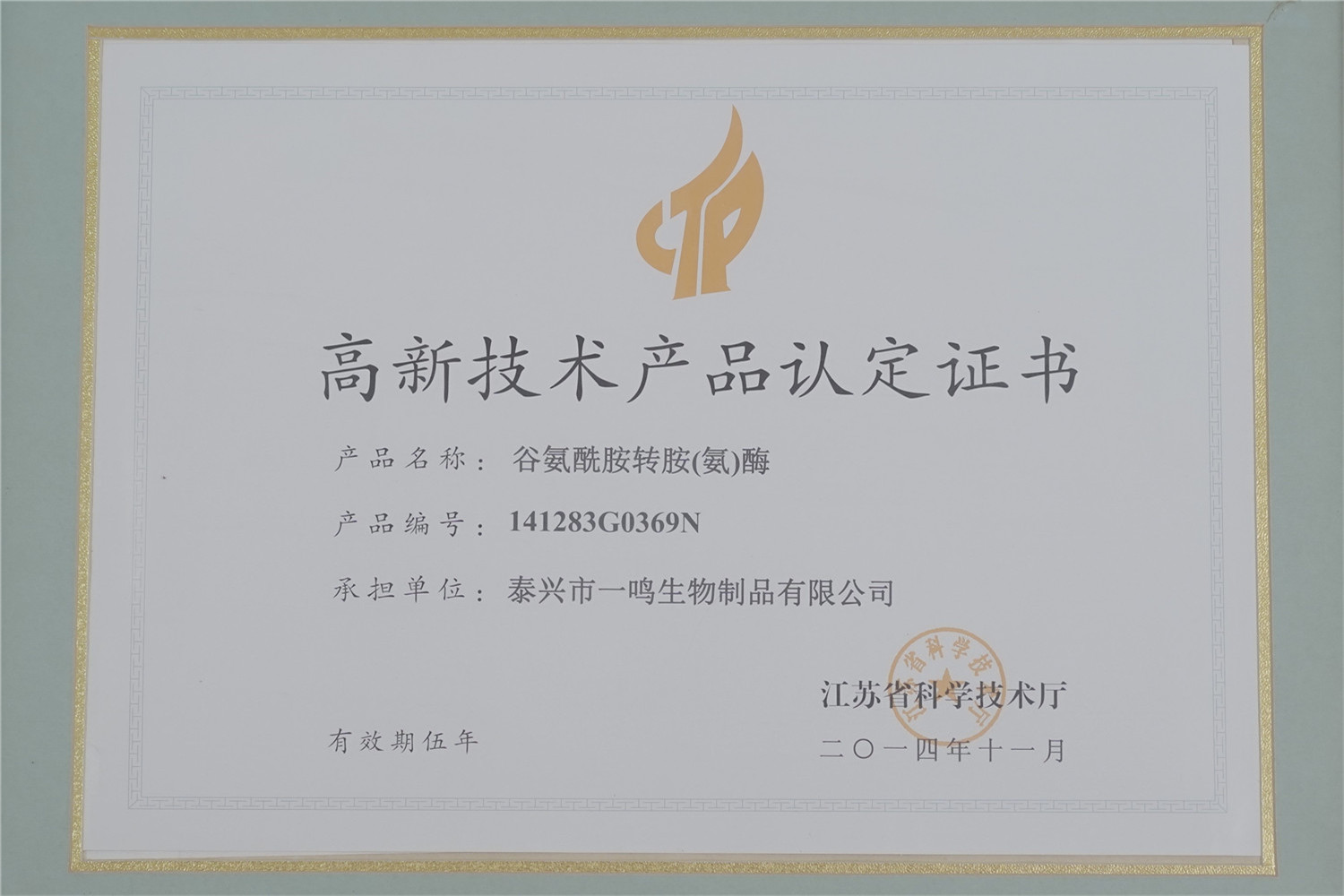 一鸣生物现为中国食品添加剂和配料协会理事单位、中国生物发酵产业协会团体会员单位、中国发酵工业协会团体会员单位、江苏省食品添加剂和配料协会理事单位、江苏省现代工业发酵协同创新中心共建单位,江苏省高新技术企业、江苏省民营科技企业、泰州市农业产业化龙头企业,公司资信等级为AAA级。公司注重创新与研发,具备先进的微生物菌种技术和酶分子定向进化技术,拥有先进的研发实验室和众多GMP标准车间,并于2017年获得国家知识产权局颁发的中国专利优秀奖。2021年,一鸣生物入选国家级专精特新“小巨人”企业名单。2023年,一鸣生物谷氨酰胺转氨酶获得“江苏精品”认证证书。