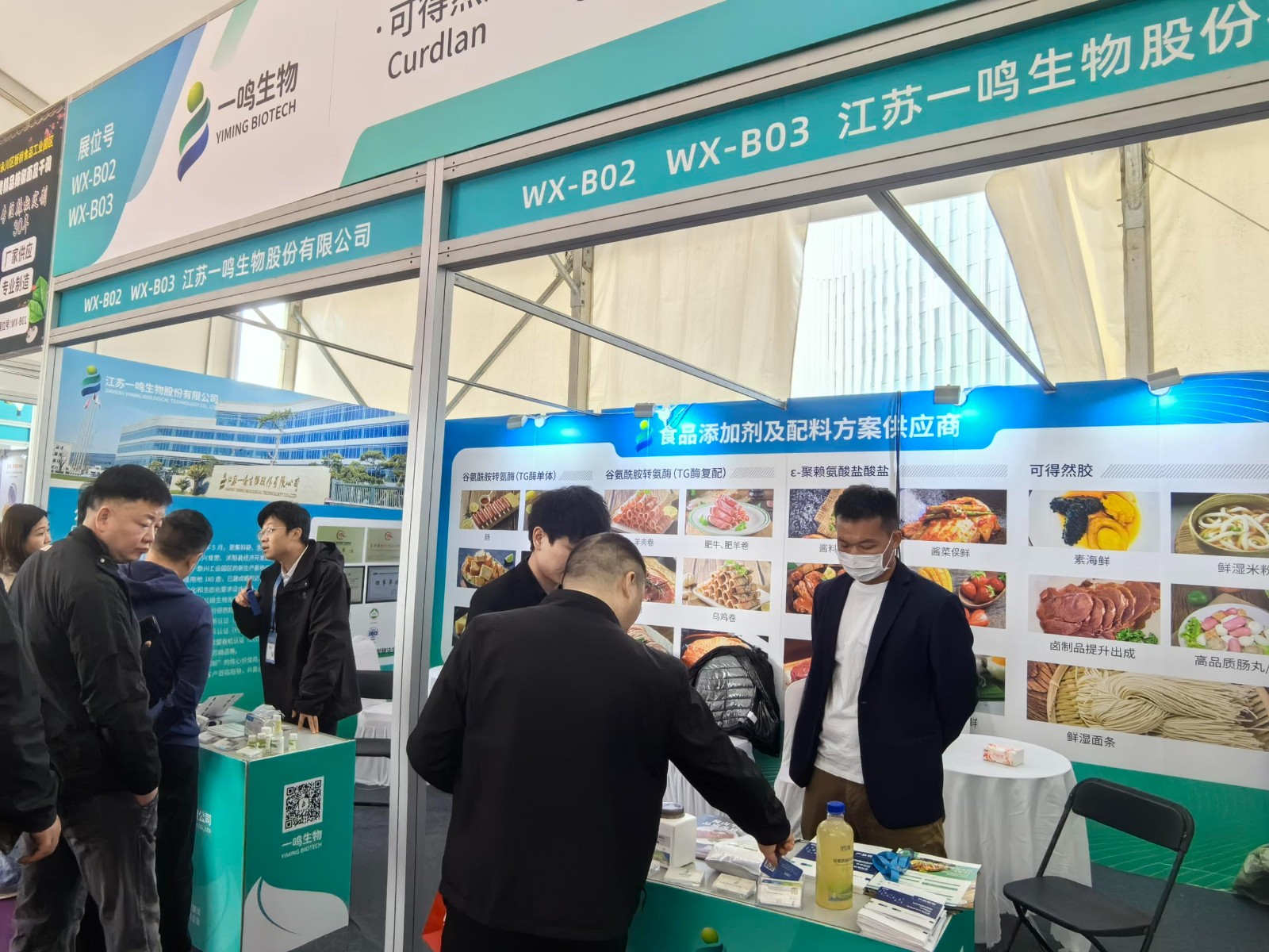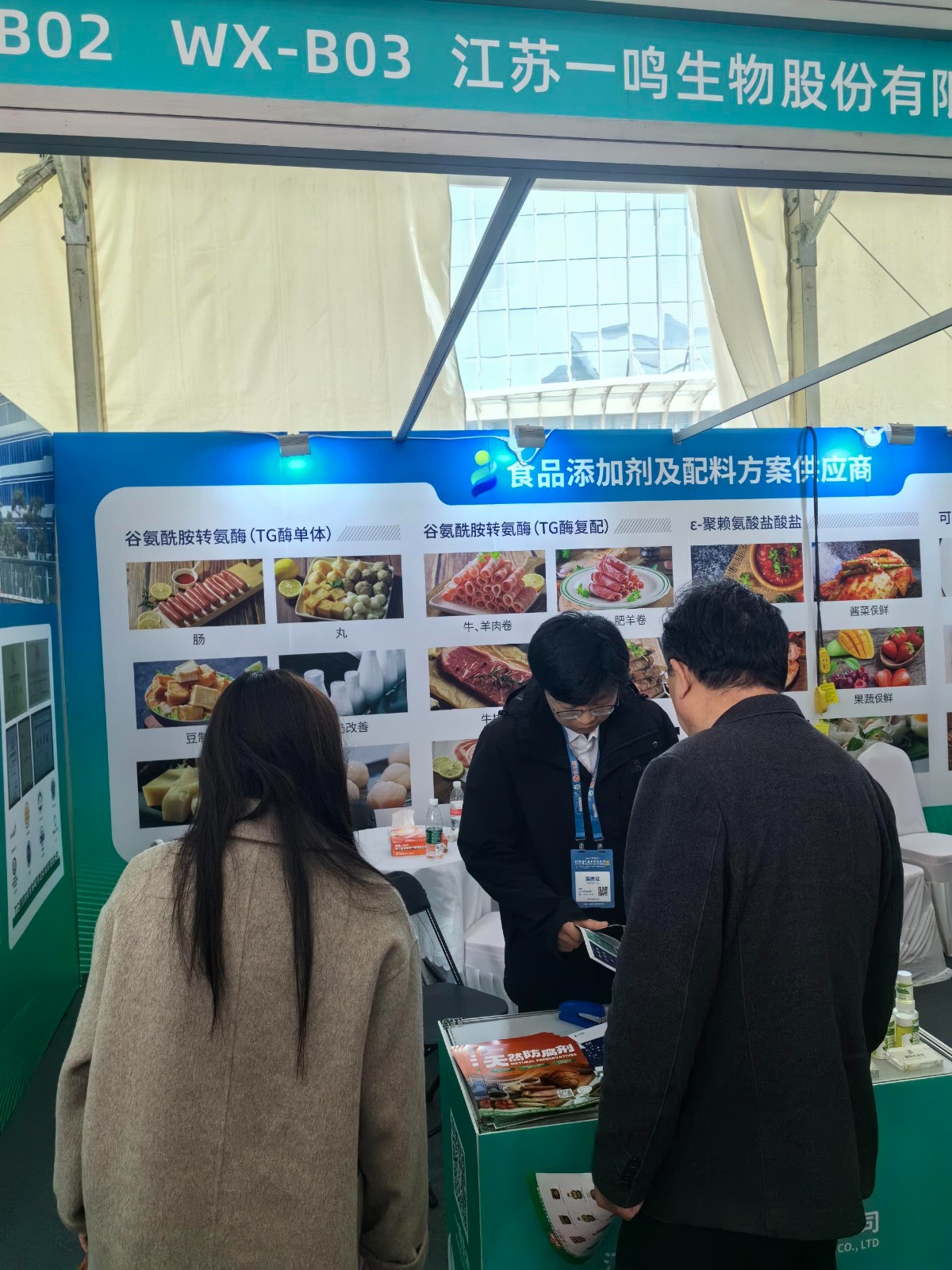 展会期间,现场盛况空前,人流如织,观展人员络绎不绝。此次展会,一鸣生物带来了TG酶、可得然胶、ε-聚赖氨酸盐酸盐、鸡胸肉复配无磷保水剂、鲜湿面条增筋剂等一系列行业应用解决方案,吸引了诸多参展客户驻足观摩、咨询洽谈。